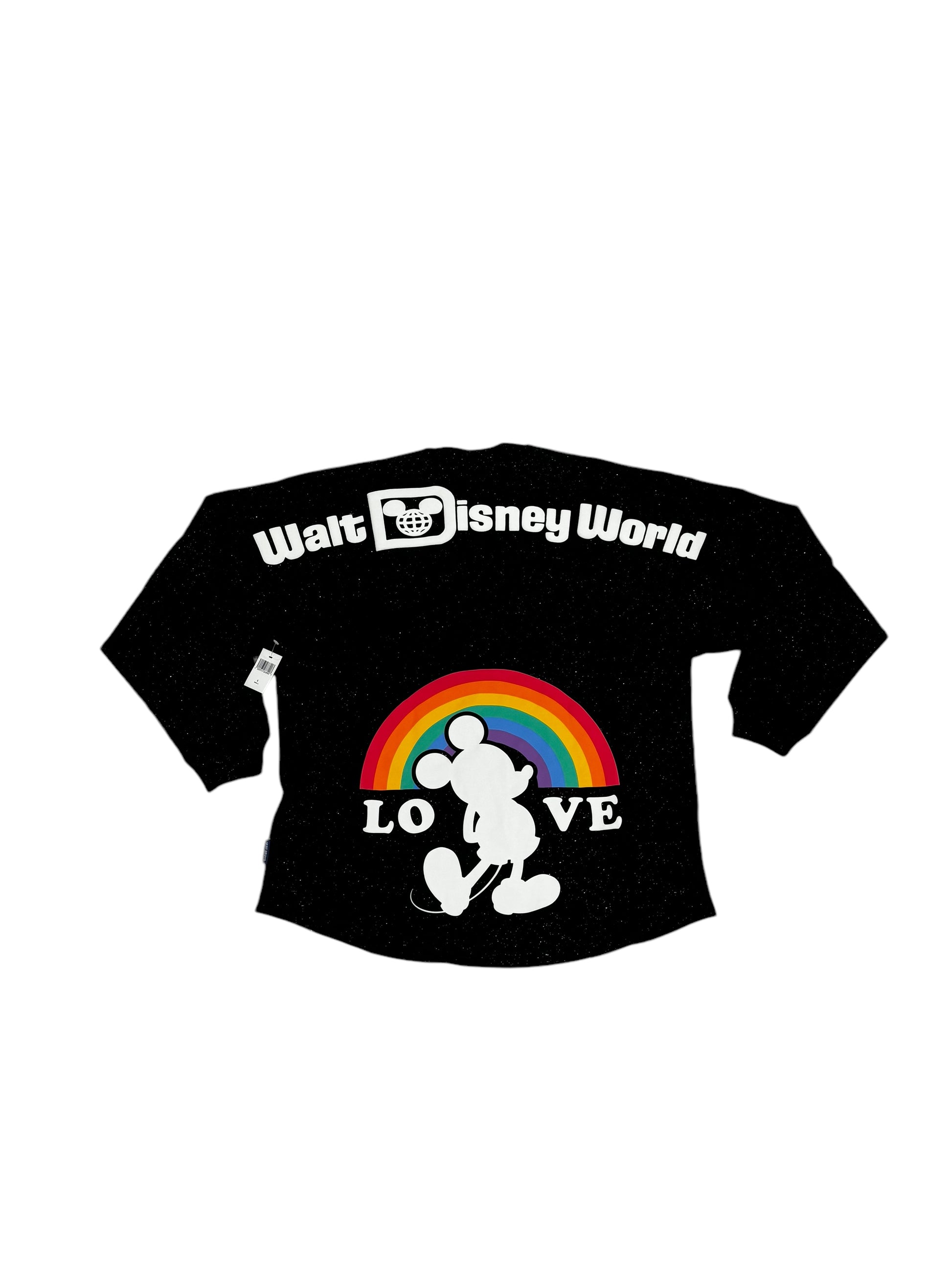 Celebrate love and pride at Walt Disney World with our Mickey Love Glitter Spirit Jersey! This vibrant rainbow pride jersey will make you stand out in any crowd. Show off your unique style and love for Disney with a touch of sparkle. (Mickey ears not included.)